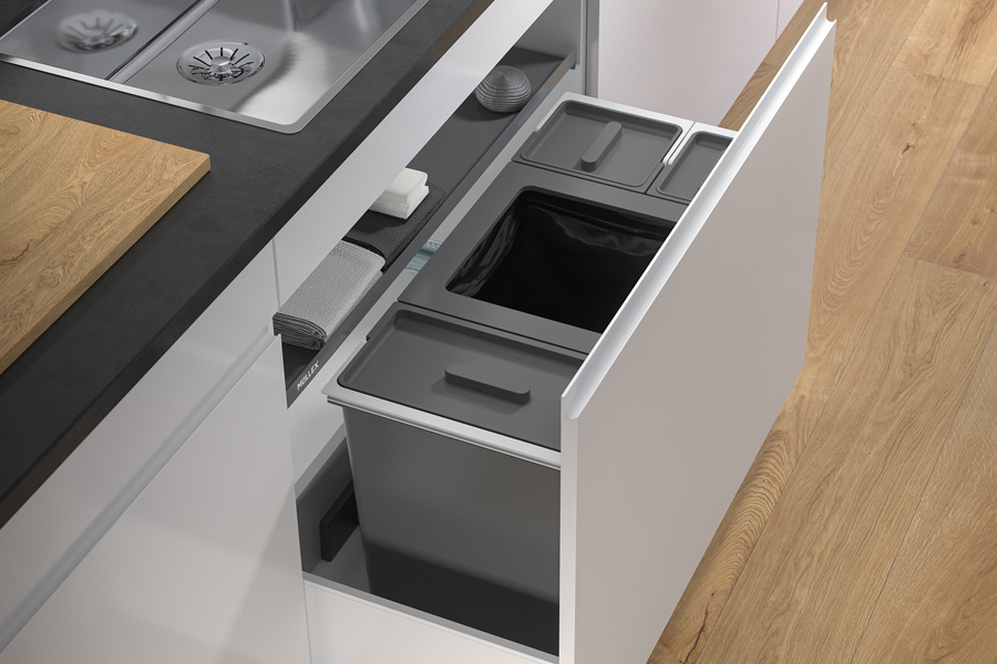 Unser Sortiment bietet hochwertige und durchdachte Abfalltrennsysteme. Modellabhängig können sie in Schubladenauszüge oder Rollschubauszüge integriert werden. Des Weiteren erhalte Sie bei uns Systeme für Drehtüren sowie freistehende Behälter.