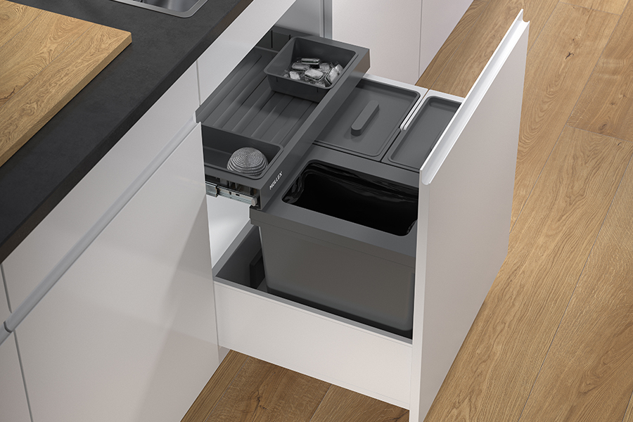 Con i prodotti Müllex potete riporre il vostro sistema di raccolta differenziata dietro ante estraibili e girevoli, nonché nei cassetti. Offriamo diversi sistemi di separazione dei rifiuti per ogni tipo di installazione.