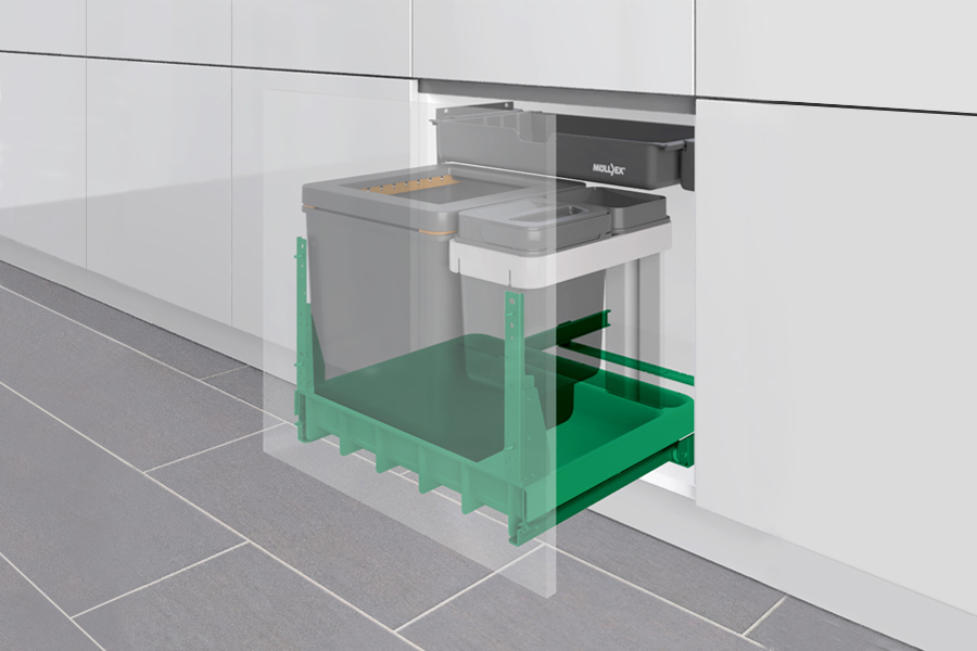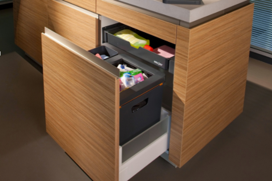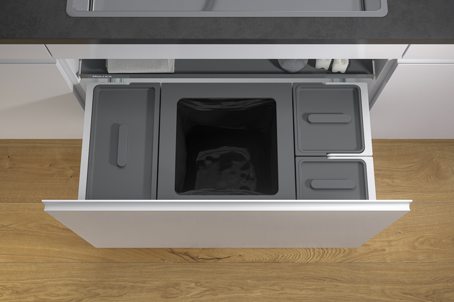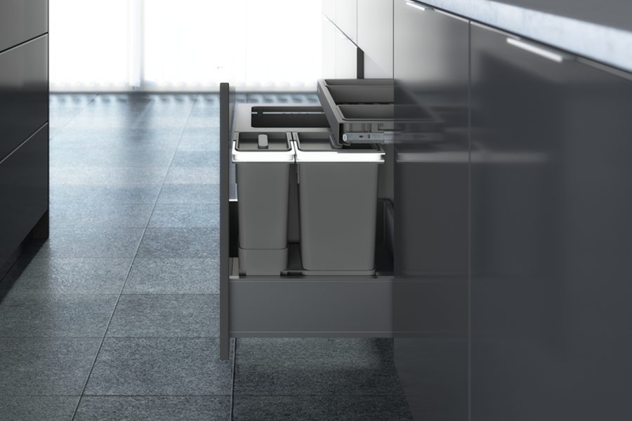 – Systeme für Schubkästen: Ein Abfalltrennsystem kann in einen vorhandenen Schubkasten eingesetzt werden. Abfallsysteme sind schnell und einfach in Schubladenauszüge montiert. Schubkästen sind zudem sehr flexibel und leicht zu reinigen.